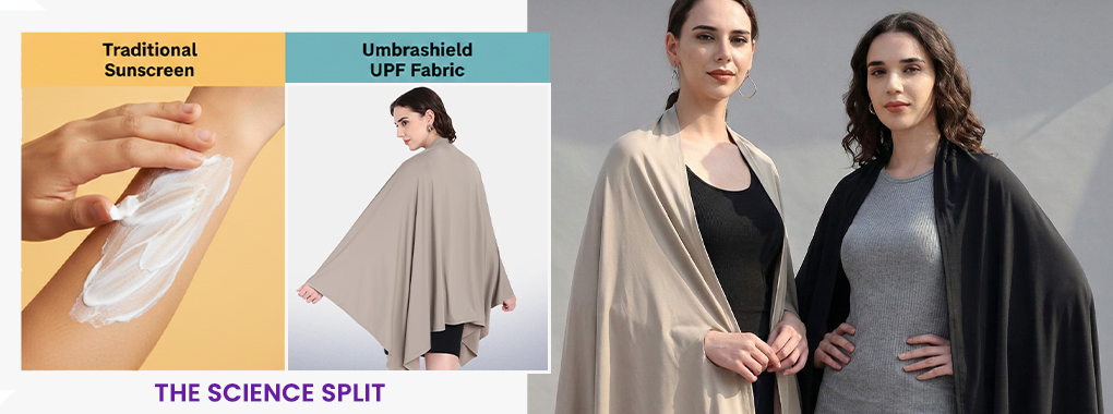 | Feature | Normal Fashion Scarf | Chemical Sunscreen | Umbrashield UV scarf |